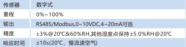 二、探桿式溫濕度變送器參數(shù)